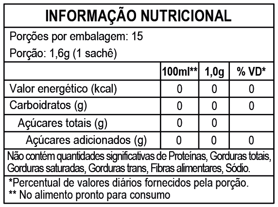 Hibisco, Citrato de Magnésio, Melissa, Cacau, Sálvia, Aroma Natural de Morango, Estévia, Aroma Natural de Baunilha, Gluconato de Zinco, Aroma Natural de Cereja, Morango, Suco de Cereja em Grânulos.