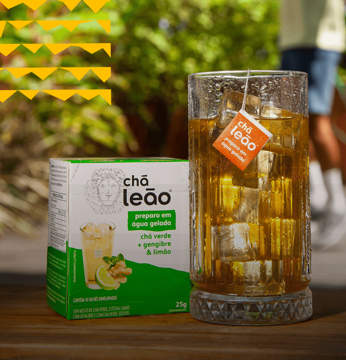 A linha de chás Leão para preparo em água gelada traz sabor e leveza de um jeito fácil, onde e quando quiser. Basta misturar, sem precisar de água quente. Perfeita para refrescar o dia a qualquer hora.