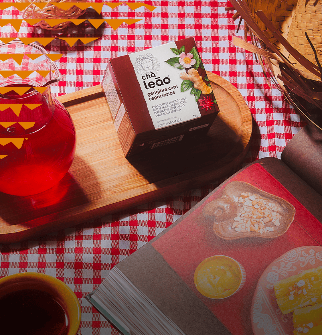 FLORES DE HIBISCO (Hibiscus sabdariffa L.), RIZOMAS DE GENGIBRE (Zingiber officinale Roscoe), FRUTOS DE MAÇÃ (Pyrus malus L.), CASCAS DE CANELA-DO-CEILÃO (Cinnamomum zeylanicum Ness), BOTÕES FLORAIS DE CRAVO-DA-ÍNDIA (Caryophyllus aromaticus L.), RAÍZES DE BETERRABA (Beta vulgaris L.), FRUTOS E FLORAIS DE ROSA SILVESTRE (Rosa canina L.), RAÍZES DE ALCAÇUZ (Glycyrrhiza glabra L), FOLHAS DE ESTÉVIA (Stevia rebaundiana Bert), FRUTOS DE PIMENTA PRETA (Pyper nigrum L), FRUTOS DE ANIS ESTRELADO (Illicium Verum Hook), AROMATIZANTES.