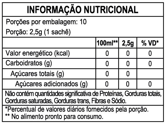 FOLHAS E TALOS DE CHÁ PRETO (Camellia sinensis (L.) Kuntze), FOLHAS DE HIBISCO (Hibiscus sabdariffa L.), FOLHAS DE ESTÉVIA (Stevia rebaundiana Bert), EXTRATO AQUOSO SOLÚVEL DE FOLHAS E TALOS DE CHÁ PRETO (Camellia sinensis (L.) Kuntze), FRUTOS DE PÊSSEGO (Prunus persica (L.) Batsch), AROMATIZANTES.