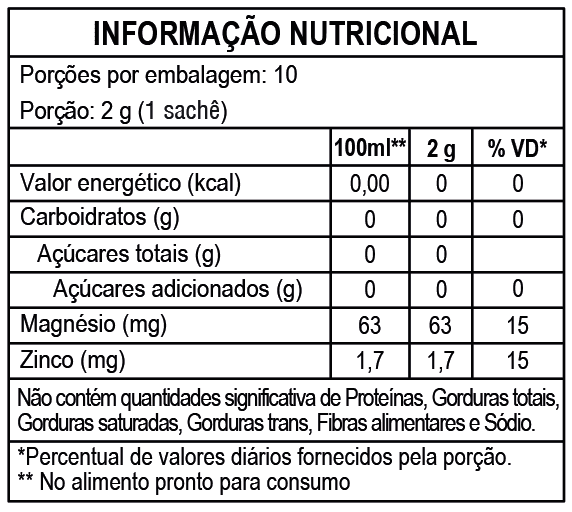 Hibisco, Citrato de Magnésio, Melissa, Cacau, Sálvia, Aroma Natural de Morango, Estévia, Aroma Natural de Baunilha, Gluconato de Zinco, Aroma Natural de Cereja, Morango, Suco de Cereja em Grânulos.